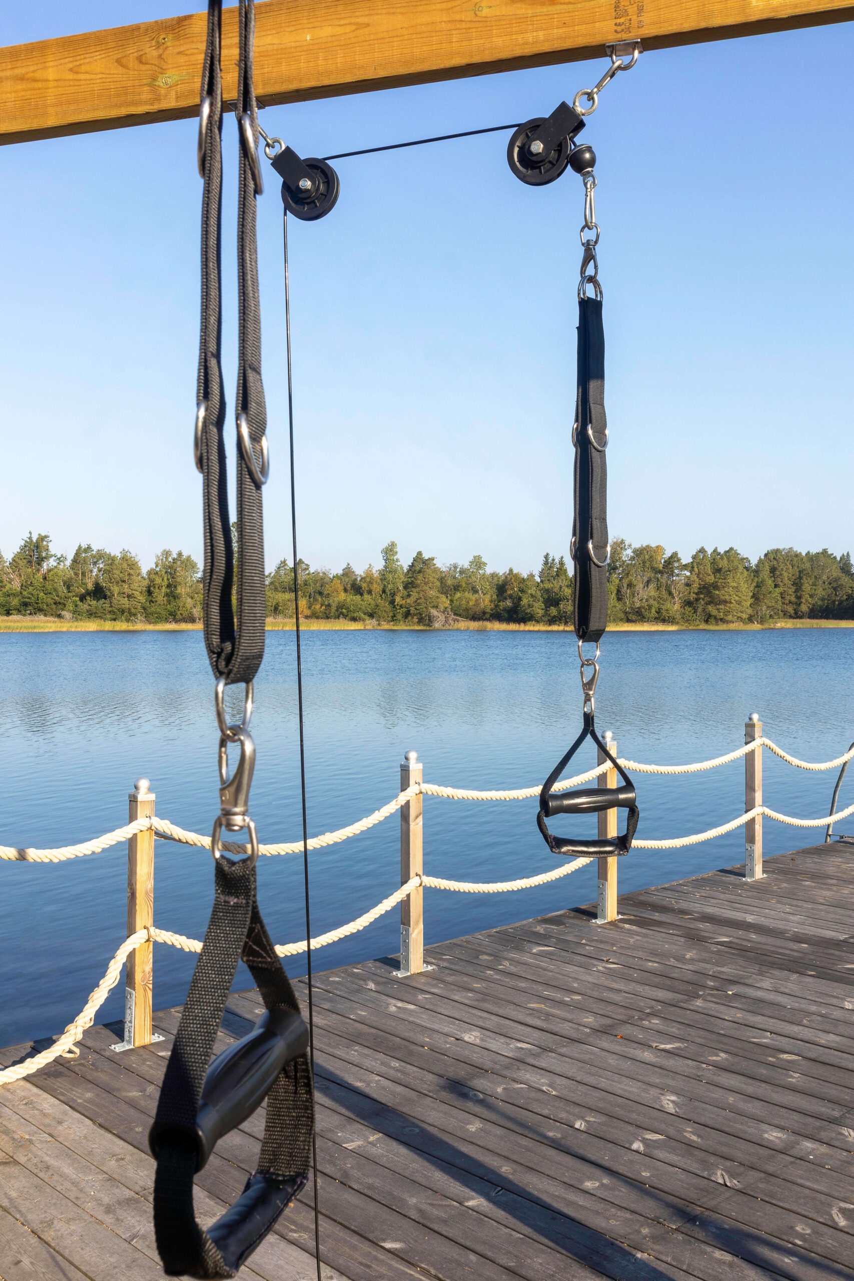 – Träningsband i UV beständigt material med rostfria D-ringar, 2 st kortare samt 2 st längre