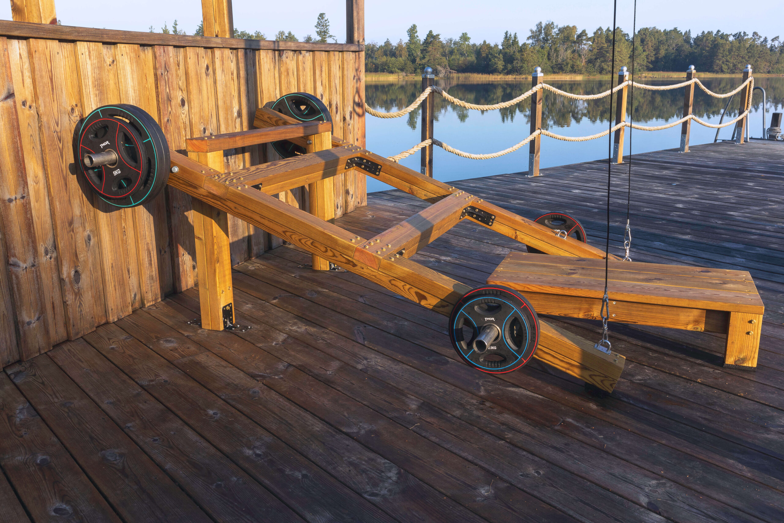 – Träningsmaskin samt träningsbänk i tryckimpregnerat virke